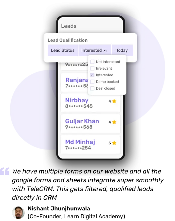 Well! If on an odd day, your team calls 100 odd people. I presume 40 would be interested and 60 will not align with what you’ve got to offer! And now from those 40 interested leads, some might be very excited to make their purchase while others might show some kind of aversion.