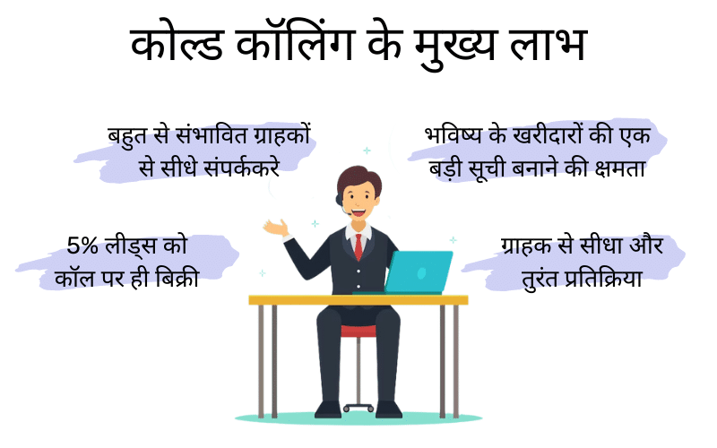 अन्य तरीकों के विपरीत, जहां रुचि रखने वाले ग्राहकों को 4-5 कदम उठाने पड़ते हैं और आपकी बिक्री टीम से जुड़ने से पहले दिनों तक इंतजार करना पड़ता है, कोल्ड कॉलिंग बहुत तेज़ होती है। उन ग्राहकों को फ़िल्टर करें जिन्हें वास्तव में अभी इसकी आवश्यकता है, और एक अच्छी कोल्ड कॉलिंग स्क्रिप्ट तैयार करें और आप कुल लीड के 5% तक का सौदा कॉल पर ही सकते हैं।