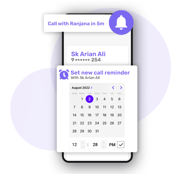 फॉलोअप एप्प का इस्तेमाल करके आप अपने कॉल्स के फॉलो-अप्स तारीख और समय के हिसाब से डाल सकते हैं, और फिर जब आपको कॉल करने का समय आएगा, तब आपको एक रिमाइंडर नोटिफिकेशन मिल जाएगा|