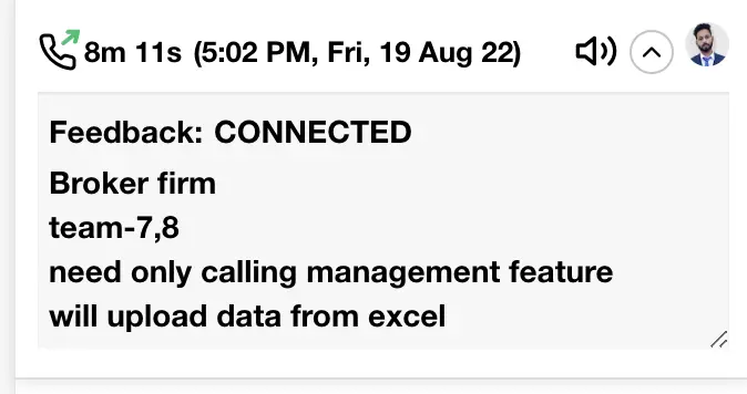 If you have telecrm installed on your phone, then after every call, you get prompted to add call notes. Which makes it incredibly convenient and ensures that you never forget.