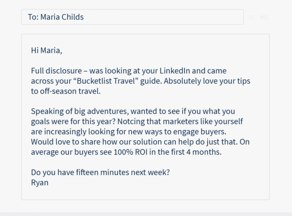 Let’s take another example of a cold pitch and notice how different it is from the previous one.