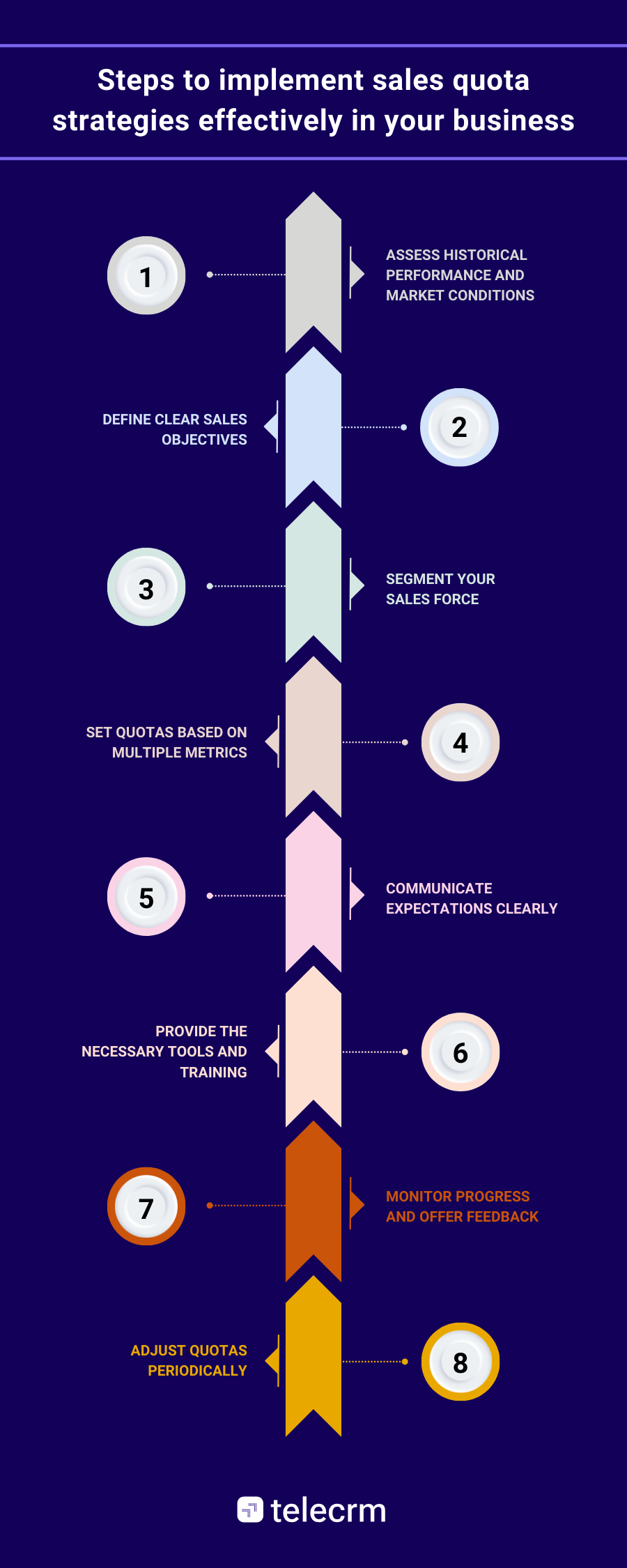 4. Technological or process changes | Incorporate new tools and processes | If new sales tools or processes are implemented that significantly enhance productivity, quotas may need to be adjusted to reflect these new capabilities. |