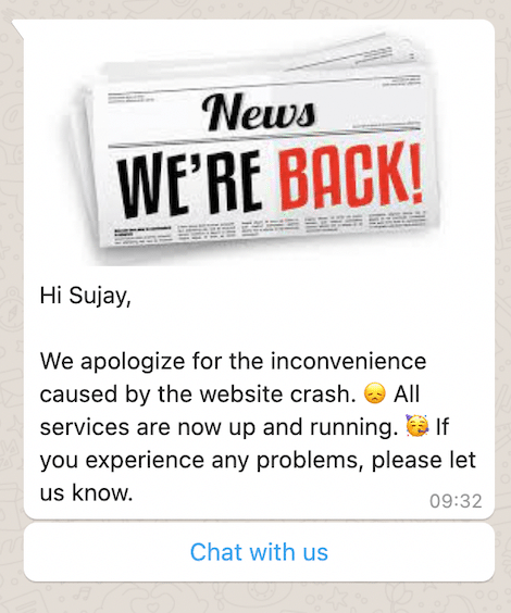 Be sure to include a call to action in the message so that customers know how to get in touch if they need further assistance.