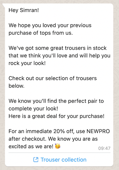 We have 29 tried and tested WhatsApp promotional message templates that will not only increase your click-through rates (CTR) but will also increase the engagement with your leads and the overall effectiveness of your WhatsApp marketing campaigns