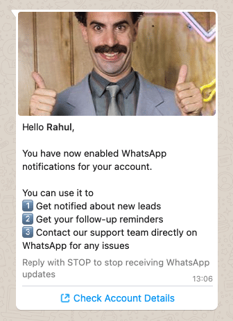 You have now enabled WhatsApp notifications for your account.